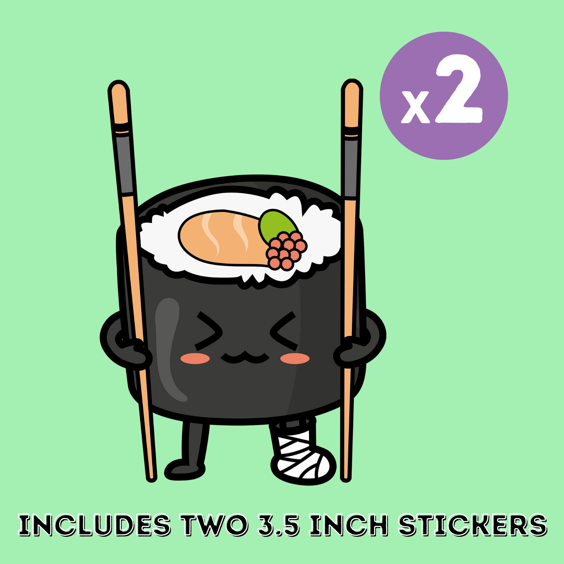 Cute Injured Sushi Sticker 2 Pack Kawaii Chopsticks Sashimi Etsy